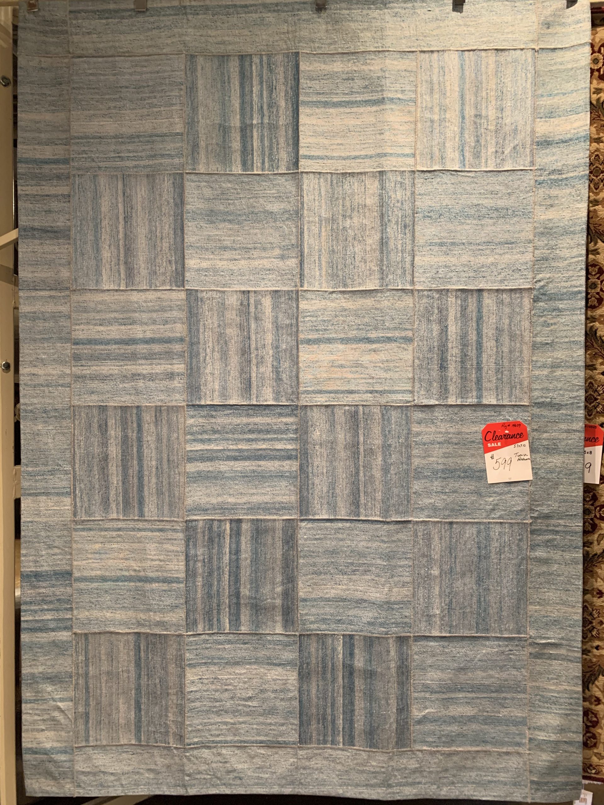 Turkish Patchwork Rug in Shades of Light Blue